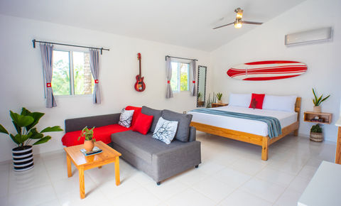 The rooms at Barefoot Project Paradise offer a tranquil and luxurious escape, featuring modern amenities like plush bedding, air conditioning, and high-speed Wi-Fi. Large windows and private balconies provide stunning ocean or garden views. Elegantly furnished with local flair, these rooms create a serene and inviting atmosphere, perfect for a restful getaway.